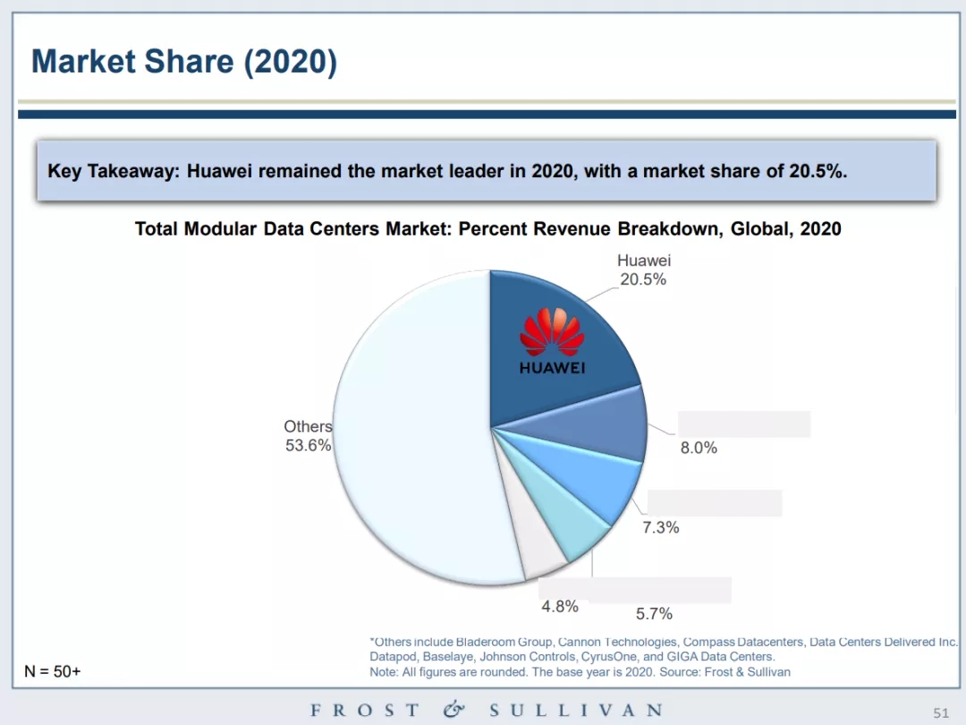 ICC訊 近日,第三方權(quán)威咨詢機構(gòu)Frost & Sullivan發(fā)布《全球模塊化數(shù)據(jù)中心市場報告》,報告顯示,近年來,華為智能微模塊解決方案市場份額增長迅速,全球市場份額從2017年的12.7%上升至2020年的20.5%,持續(xù)保持全球第一的領(lǐng)先地位!