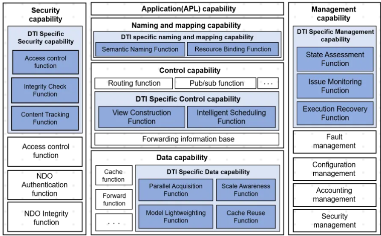 面向制造、交通、醫(yī)療、能源、城市治理等關(guān)鍵領(lǐng)域,智能化業(yè)務(wù)的部署對AI模型的訓(xùn)練與推理方式提出了差異化要求。一方面,為滿足低時延響應(yīng)與就近數(shù)據(jù)處理需求,AI推理與決策功能需在終端、邊緣與云側(cè)之間實現(xiàn)合理分工與協(xié)同;另一方面,分布式AI訓(xùn)練與推理過程涉及數(shù)據(jù)、模型更新以及中間結(jié)果在多節(jié)點間的持續(xù)交換與復(fù)用,這對網(wǎng)絡(luò)的支撐能力提出了更高要求。在此背景下,6G與AI的深度融合正在成為新一代信息基礎(chǔ)設(shè)施的關(guān)鍵支點:AI賦予網(wǎng)絡(luò)更強的感知與自主優(yōu)化能力,6G則為AI在端、邊、云之間的協(xié)同訓(xùn)練與實時推理提供更廣覆蓋、更低時延、更高可靠的連接底座。針對上述應(yīng)用需求,高研院研究團隊依據(jù)此前提出的6G信息中心網(wǎng)絡(luò)支持機器學(xué)習(xí)的總體框架,并充分結(jié)合當(dāng)前分布式訓(xùn)練與推理不斷演進的新趨勢,聚焦跨域協(xié)同執(zhí)行、數(shù)據(jù)對象協(xié)同處理以及任務(wù)連續(xù)性保障等關(guān)鍵環(huán)節(jié),在既有功能框架基礎(chǔ)上,進一步分析分布式訓(xùn)練與推理各階段對命名解析、數(shù)據(jù)組織、控制調(diào)度及執(zhí)行保障等方面提出的增強需求,系統(tǒng)梳理相關(guān)附加能力,并形成面向分布式訓(xùn)練與推理場景的功能補充說明。通過標準化手段構(gòu)建可對齊、可復(fù)用、可實施的支撐框架,為AI智能業(yè)務(wù)在6G時代的穩(wěn)定部署與規(guī)模推廣奠定堅實基礎(chǔ)。相關(guān)標準的制定與推進,對提升我國在未來網(wǎng)絡(luò)領(lǐng)域的國際話語權(quán)和產(chǎn)業(yè)競爭力、保障國家信息基礎(chǔ)設(shè)施安全自主可控具有重要戰(zhàn)略意義。同時,這也將為智慧醫(yī)療、智能交通、工業(yè)互聯(lián)網(wǎng)等民生重點領(lǐng)域的數(shù)字化轉(zhuǎn)型提供底層技術(shù)支撐,切實賦能千行百業(yè)、惠及千家萬戶。