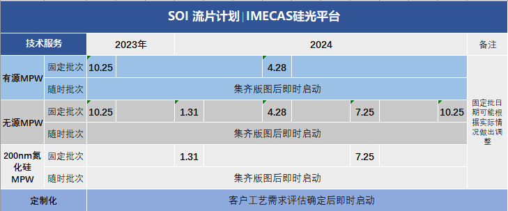 ICC訊 9月6日,中科微光子科技(成都)有限公司(簡(jiǎn)稱:中科微光子)參展CIOE并公布了最新的流片計(jì)劃表。中科微光子主要基于中科院微電子所硅光平臺(tái)開展硅基光電子器件及集成芯片的制備和測(cè)試等技術(shù)服務(wù)的產(chǎn)業(yè)化,廣泛面向光通信、數(shù)據(jù)中心、光量子計(jì)算、激光雷達(dá)、微波光子、生物傳感等應(yīng)用領(lǐng)域。