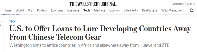 【環(huán)球網(wǎng)報(bào)道 記者 丁潔云】為了不讓發(fā)展中國(guó)家使用華為和中興的電信設(shè)備,美國(guó)出新招了?據(jù)美國(guó)《華爾街日?qǐng)?bào)》18日消息,美國(guó)政府正著手推動(dòng)說(shuō)服發(fā)展中國(guó)家避開(kāi)中國(guó)的電信設(shè)備,方法是向?qū)Ψ教峁┵J款和其他資金,使用華盛頓方面聲稱(chēng)的“更安全的替代設(shè)備”。