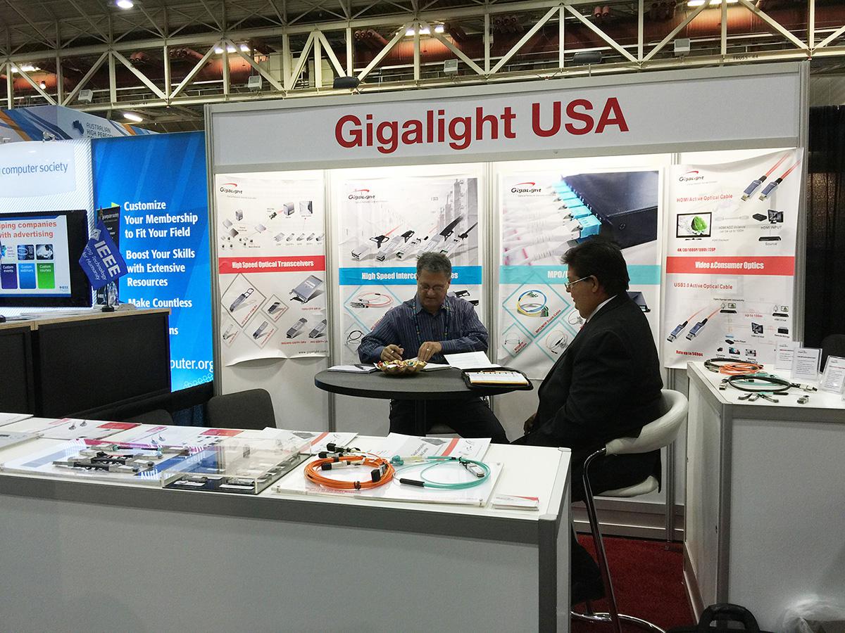 易飛揚MPO/MTP高密度預(yù)連接布線產(chǎn)品,包含4/8/12/24/48多芯傳輸,滿足100G/40G光纖網(wǎng)絡(luò)通訊需求,其中120G CXP 光模塊,高達150G的傳輸帶寬,100G CFP-SR10光模塊,支持 100GBase-SR10應(yīng)用,二者皆采用MPO多模光纖連接器,內(nèi)置850nm VCSEL激光器,PIN陣列,集成驅(qū)動和接收芯片,為基于100G以太網(wǎng)應(yīng)用技術(shù)的設(shè)備提供更大的端口密度,優(yōu)化布線方案,提高布線工程效率。另還展出了40G QSFP+ PSM IR4、56G QSFP+ SR4, 40G QSFP+ LR4, 40G QSFP+ SR4等高速光模塊,為40G長距離電信接入網(wǎng)提供可靠的解決方案,并應(yīng)用于核心路由器和數(shù)據(jù)中心場景。