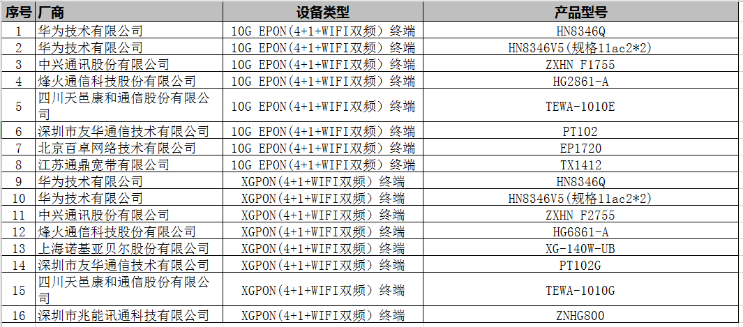 標(biāo)包1:10G EPON(4+1+WIFI雙頻)終端須為通過(guò)“2019年中國(guó)聯(lián)通10G PON 上行智能網(wǎng)關(guān)終端技術(shù)測(cè)試”的入圍產(chǎn)品(具體入圍產(chǎn)品名單請(qǐng)看下圖);