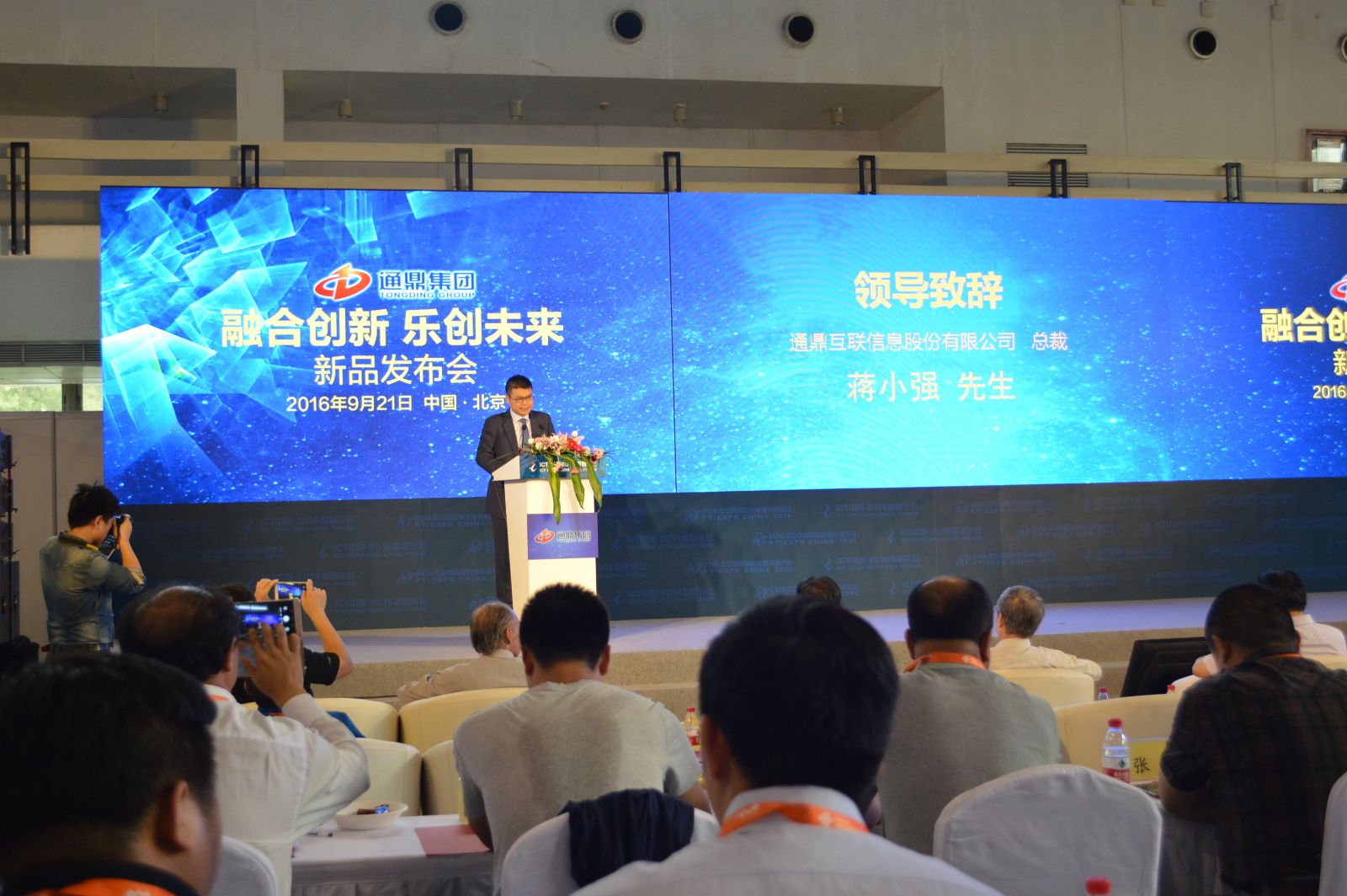 9月21日下午,通鼎集團攜新技術、新產品、新應用在展覽中心2號館召開新品發(fā)布會。通鼎互聯(lián)技術總監(jiān)李震宇主持會議。通鼎互聯(lián)總裁蔣小強、中國工程院院士鄔賀銓、中國通信企協(xié)光電線纜專委會秘書長段志剛分別發(fā)表致辭。通鼎互聯(lián)副總裁劉延輝、通鼎互聯(lián)技術總監(jiān)李震宇、北京百卓網絡技術有限公司總經理陳海濱,則從三個維度對通鼎的新品進行了詳細的介紹。最后,通鼎集團董事長沈小平對會議進行了總結,同時對通鼎集團的未來發(fā)展進行相關闡述和展望!