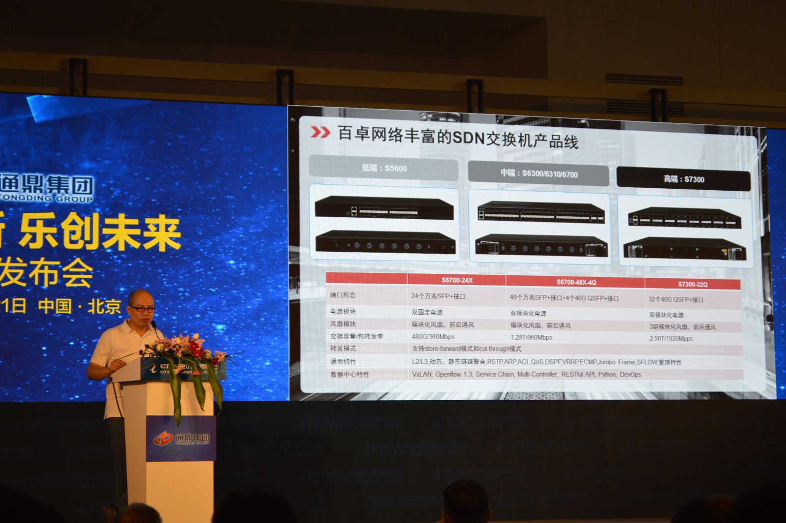 通鼎互聯(lián)旗下子公司百卓網絡總經理陳海濱發(fā)布了SDN解決方案。SDN通過動態(tài)調度、用戶分級,保持流量均衡轉發(fā)鏈路利用率高,節(jié)省帶寬建設。