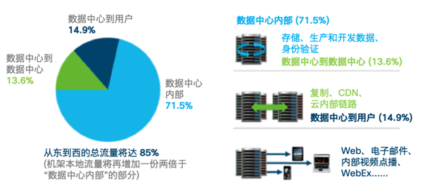 思科全球云指數(shù)預(yù)計(jì),截至 2021 年,每年的數(shù)據(jù)中心總流量(數(shù)據(jù)中心內(nèi)部或流出數(shù)據(jù)中心的所有流量)將達(dá)到近 20 Z 字節(jié),而這一數(shù)字在 2016 年還僅為 7 Z 字節(jié)。全球范圍內(nèi)的數(shù)據(jù)中心流量將以 25% 的年復(fù)合增長(zhǎng)率迅猛增長(zhǎng),云數(shù)據(jù)中心流量的年復(fù)合增長(zhǎng)率則會(huì)高達(dá) 27%。從 2016 到 2021 年,增長(zhǎng)幅度達(dá) 3.3 倍。