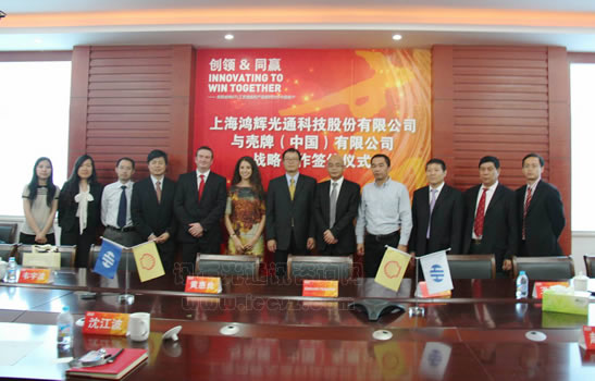 而本次致辭的另一代表方來自英國(guó)殼牌公司,英國(guó)殼牌公司是世界五百?gòu)?qiáng)企業(yè)之一,工業(yè)基礎(chǔ)油是第一次進(jìn)入中國(guó),進(jìn)入上海鴻輝光通科技股份有限公司。而上海鴻輝是全中國(guó)乃至全世界最大的光纖、光纜油膏的制造商,這次的強(qiáng)強(qiáng)聯(lián)合,將開創(chuàng)雙方合作的新紀(jì)元。殼牌公司非常重視與中國(guó)鴻輝的戰(zhàn)略合作,此次派出4位重要管理人員Hubsch er Deborah 全球工業(yè)油供應(yīng)總裁、Laidlaw Gavin J亞太區(qū)域市場(chǎng)部經(jīng)理、James Shen 中國(guó)區(qū)潤(rùn)滑油業(yè)務(wù)總經(jīng)理、韋宇波 亞太區(qū)域銷售經(jīng)理參與鴻輝的戰(zhàn)略合作協(xié)議的簽署,見證歷史性的一刻。