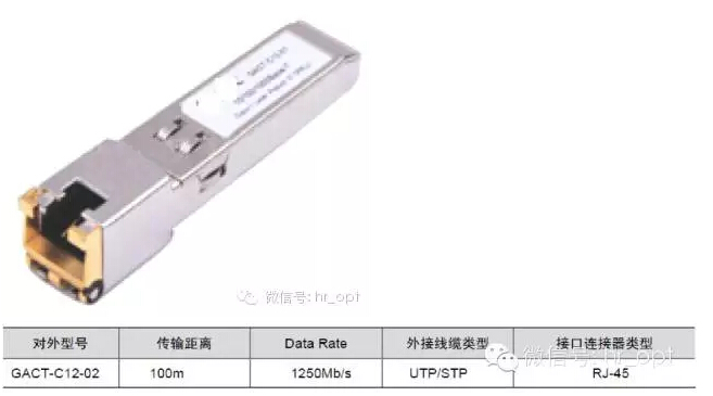 電口模塊,即Copper SFP,SFP封裝,電口模塊,100米可支持最大傳輸距離 100m(RJ45,5類(lèi)雙絞線為傳輸介質(zhì))。