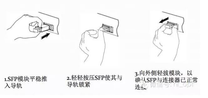 B. 對(duì)光模塊操作時(shí)做靜電防護(hù)工作(如:帶靜電環(huán)或?qū)⑹滞ㄟ^(guò)預(yù)先接觸機(jī)殼等手段釋放靜電),接觸光模塊殼體,避免接觸光模塊PIN 腳;