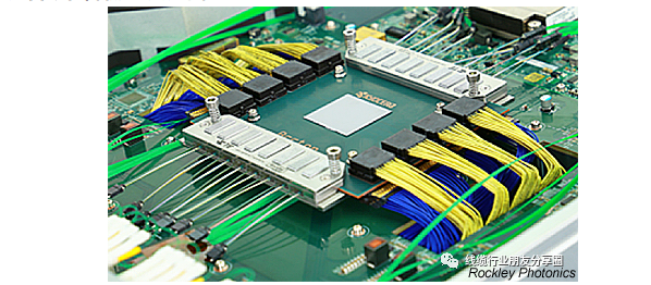 另一種最近的解決方案是共封裝光學(xué),它將電光轉(zhuǎn)換過程定位在具有SERDES或開關(guān)芯片的公共基板上,并使用光學(xué)將信號直接帶到I/O面板。結(jié)果是失真小,端口密度高。