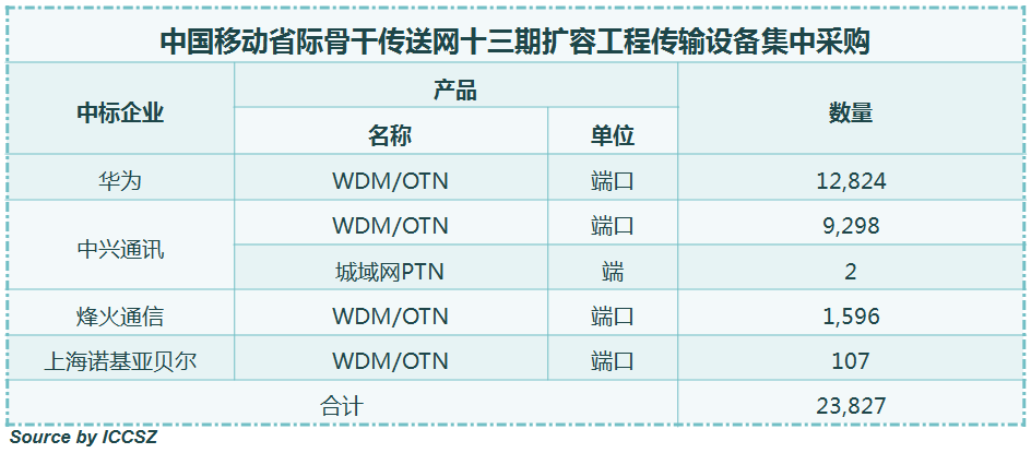 中國(guó)移動(dòng)省際骨干傳送網(wǎng)擴(kuò)容集采公布 華為、中興、烽火、上海貝爾中標(biāo)