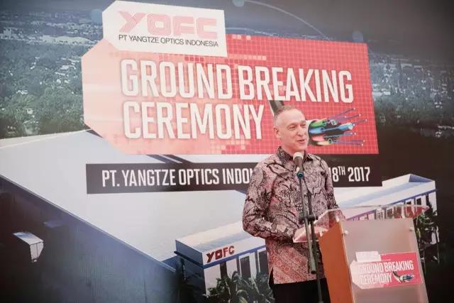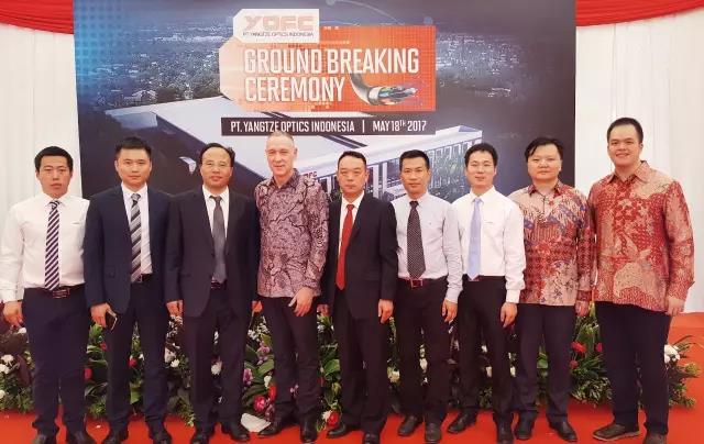 ICCSZ訊 長飛光纖光纜股份有限公司(股票代碼:06869.HK,以下簡稱“長飛公司”)又傳捷報(bào),繼2017年1月4日與印尼PT Fiber Optik Teknologi Indonesia在新加坡簽署了合資成立光纜制造公司協(xié)議后,長飛印尼光通信有限公司(PT Yangtze Optics Indonesia )項(xiàng)目奠基儀式5月18日在印尼西爪哇省卡拉旺市隆重舉行。印尼通信協(xié)會(huì)主席Kristiono、西爪哇省領(lǐng)導(dǎo)Agus Sokiono,長飛公司第一副總裁Jan Bongaerts,長飛印尼光通信有限公司印尼方股東Johnny、總經(jīng)理許定昉,長飛光纖印尼有限公司總經(jīng)理陳慧雄等參加了奠基儀式。