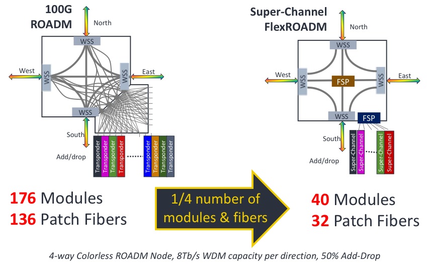 該靈活ROADM聲稱將提供業(yè)內(nèi)兩個首創(chuàng):它可以隨意添加或刪除基于靈活網(wǎng)絡(luò)的500G超級通道,并使用互聯(lián)網(wǎng)工程任務(wù)組(IETF)的頻譜交換光網(wǎng)絡(luò)(SSON)。SSON是下一代WSON[波長交換光網(wǎng)絡(luò)控制平臺],除了它的頻譜管理。