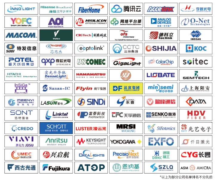 ANRITSU、Colorchip、DenseLight、KEYSIGHT、Macom、MRSI SYSTEMS 、POET、SCHOTT AG、SEMTECH、SIFOTONICS、VIAVI、YOKOGAWA、旭創(chuàng)、海思、光迅、海信、昂納、劍橋、德科立、新易盛、聯(lián)特科技、仕佳光子、迅特、海光芯創(chuàng)、明夷科技、源杰半導(dǎo)體、芯思杰、敏芯半導(dǎo)體、奇芯光電、凡谷電子、仟目激光、廈門優(yōu)迅、老鷹半導(dǎo)體、橙科微、芯速聯(lián)、富泰科技、凌云光、昱升、蘇駝、九州光電子、三安集成、亨通、永鼎、長(zhǎng)飛、華拓、西迪特、恩納基等知名企業(yè)將在CIOE2022帶來(lái)最新產(chǎn)品。(企業(yè)排名不分先后)
