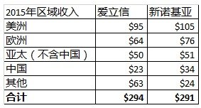 再從2015年的區(qū)域收入對照來看,在美洲、亞太和歐洲這些主要市場上,愛立信和新諾基亞勢均力敵的態(tài)勢更為明顯,特別是由于政治原因華為和中興不得進入的北美運營商市場,注定將成為二者爭奪最為激烈的主戰(zhàn)場。在中國市場,新諾基亞將以國資委下轄的合資公司形式運營,愛立信的純外資身份在于國有占股50%的新諾基亞的競爭中將處于劣勢,兩者之間的差距將會進一步加大。