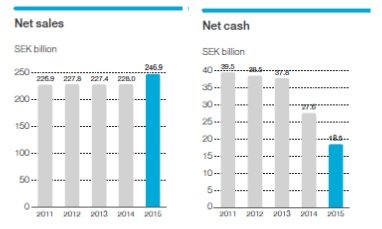 對于愛立信來說,作為業(yè)內(nèi)發(fā)展最為穩(wěn)定的傳統(tǒng)通信廠商,其在行業(yè)市場和通信技術(shù)上長年的積累與沉淀是最大的競爭優(yōu)勢;而從下圖所示其5年營業(yè)收入的四平八穩(wěn)表現(xiàn)來看,一直號稱在做轉(zhuǎn)型的愛立信還是沒有找到增長的引擎,但持續(xù)下降的現(xiàn)金流還能為其為尋找新的業(yè)務(wù)增長點而做的投資提供多長時間的支持,將是未來愛立信面臨的最大挑戰(zhàn)之一。
