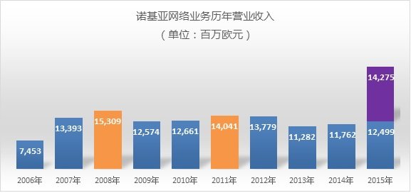由于諾基亞在2015年8月作價28億美元將HERE地圖業(yè)務(wù)進行了出售(2014年HERE地圖業(yè)務(wù)收入為12億美元),導(dǎo)致其在整體業(yè)務(wù)收入上被中興超出。