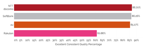 重要的是,Tutela將其自己的“Excellent Consistent Quality”排名應(yīng)用于日本所有提供商。該公司表示,其針對(duì)用戶體驗(yàn)的總體指標(biāo)包括一系列常見(jiàn)但強(qiáng)度很高的用例,例如“ 1080P視頻,實(shí)時(shí)移動(dòng)視頻廣播,在線游戲和高清視頻通話”。