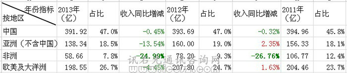按地區(qū)收入變化情況