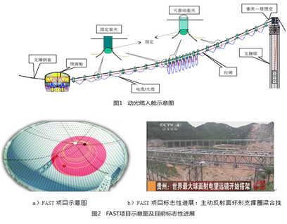 FAST項目是國家“重大科學工程”項目,2007年7月10日獲國家發(fā)改委正式批復立項,由中國科學院國家天文臺承擔,是目前世界上最大的射電望遠鏡建設項目。烽火2009年參與該項目研究,承擔開發(fā)適用于該項目的動光纜研制任務。動光纜由饋源進入艙體,承擔著傳輸各種數據信息的使命,其特殊之處在于,光纜會隨饋源位置的調整而處于不斷的收放運動中。據測算,在5年的使用時間內,光纜的反復彎曲、卷繞和扭轉等機械性能達到66000次以上,此外,光纜的外護套還要經受風吹、日曬、雨淋等惡劣自然環(huán)境的考驗。據評估,動光纜的研制是饋源支撐饋線入艙方案中技術難度最高,但必須攻克的關鍵技術之一。
