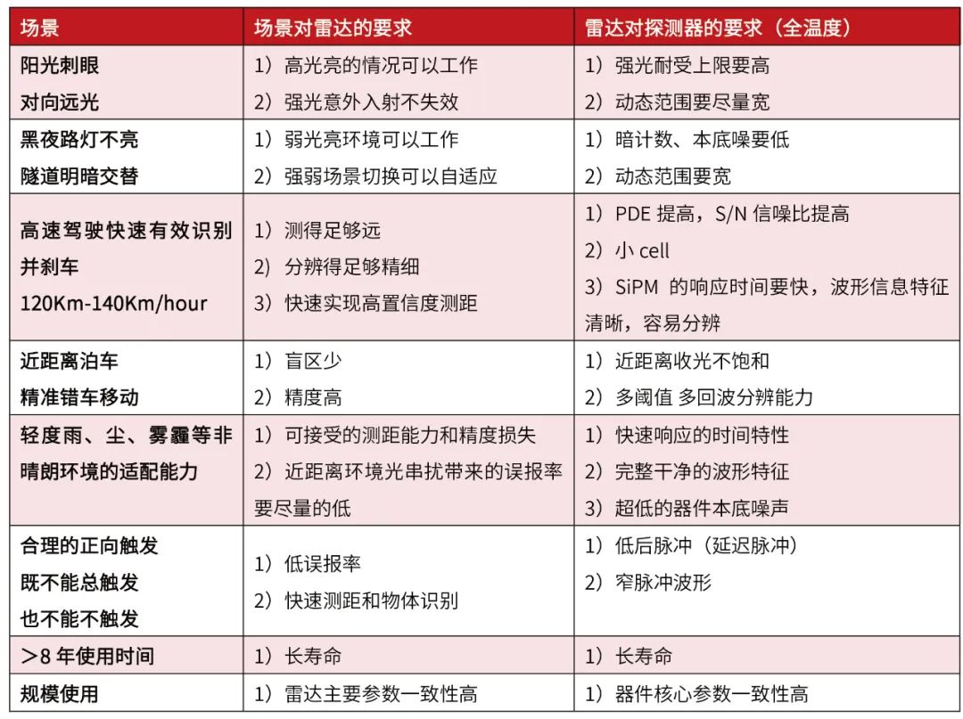 開(kāi)發(fā)車(chē)載激光雷達(dá)對(duì)SiPM的參數(shù)需求