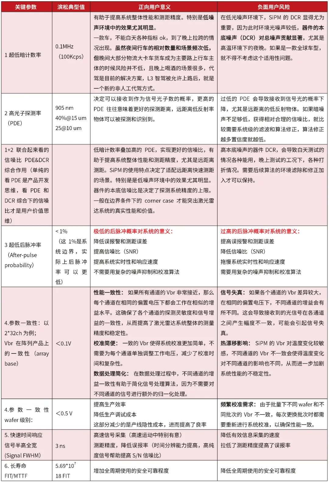 ——引用自11月12日,奇瑞控股集團(tuán)有限公司董事長(zhǎng)尹同躍先生在第三十一屆中國(guó)汽車(chē)工程學(xué)會(huì)年會(huì)上的發(fā)言。尹總的話擲地有聲,切中要害。大家都做一樣的東西,用資本的力量短期內(nèi)替換了產(chǎn)業(yè)價(jià)值是一種戰(zhàn)術(shù),但是長(zhǎng)期寄希望于資本游戲就很難說(shuō)是長(zhǎng)久之計(jì)。做出特色和不同,讓客戶的產(chǎn)品有區(qū)別于其他競(jìng)品的價(jià)值呈現(xiàn),是我們產(chǎn)業(yè)類(lèi)公司時(shí)刻要思考的話題。探討車(chē)載激光雷達(dá),其中核心的部件無(wú)疑是,收/發(fā)光部件、光路部件(透鏡掃描鍍膜等光學(xué)材質(zhì)和穩(wěn)定性),以及ASIC電子學(xué)驅(qū)動(dòng)部件。SiPM(硅光電倍增管)參數(shù)的優(yōu)劣對(duì)激光雷達(dá)系統(tǒng)性能產(chǎn)生的具體影響,長(zhǎng)期以來(lái)一直是眾多主機(jī)廠技術(shù)DRE及負(fù)責(zé)人深感困惑的問(wèn)題。近期,筆者經(jīng)常接到來(lái)自主機(jī)廠朋友的詢問(wèn),他們渴望了解SiPM不同參數(shù)背后的深刻含義,以及這些參數(shù)差異如何在實(shí)際應(yīng)用中影響激光雷達(dá)的表現(xiàn)。同時(shí)讓我們欣慰的是,主機(jī)廠不滿足激光雷達(dá)廠家對(duì)他們的介紹宣傳,需要自己掌握并建立一套理解核心器件的底層知識(shí)儲(chǔ)備,可見(jiàn)認(rèn)真做智駕,做安全駕駛的主機(jī)廠對(duì)激光雷達(dá)這個(gè)關(guān)鍵部件的看重。