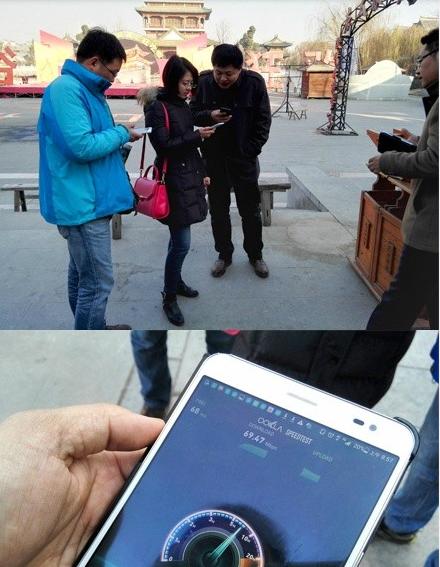 12月25日,記者們?cè)谌珖?guó)首個(gè)實(shí)現(xiàn)4G網(wǎng)絡(luò)無(wú)縫全覆蓋的景區(qū)——棗莊臺(tái)兒莊古城景區(qū)進(jìn)行體驗(yàn)活動(dòng),現(xiàn)場(chǎng)實(shí)測(cè)網(wǎng)速下行超過(guò)69M!