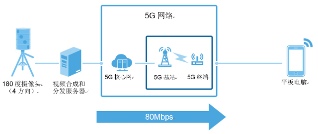 演示廳設(shè)置的180度攝像頭拍攝到的風(fēng)景,通過(guò)5G網(wǎng)絡(luò)超高速發(fā)送。為了讓多個(gè)終端用戶可以從不同角度同時(shí)欣賞風(fēng)景,180度攝像頭利用4個(gè)鏡頭從不同方向拍攝視頻,這些視頻被實(shí)時(shí)合成為廣角全景圖像。對(duì)全景視頻數(shù)據(jù)進(jìn)行壓縮、利用5G網(wǎng)絡(luò)實(shí)時(shí)發(fā)送給智能手機(jī)或平板電腦,從而提供身臨其境的用戶體驗(yàn)。此項(xiàng)技術(shù)與5G網(wǎng)絡(luò)融合,有望應(yīng)用于虛擬現(xiàn)實(shí)(VR)和增強(qiáng)現(xiàn)實(shí)(AR)等方面。
