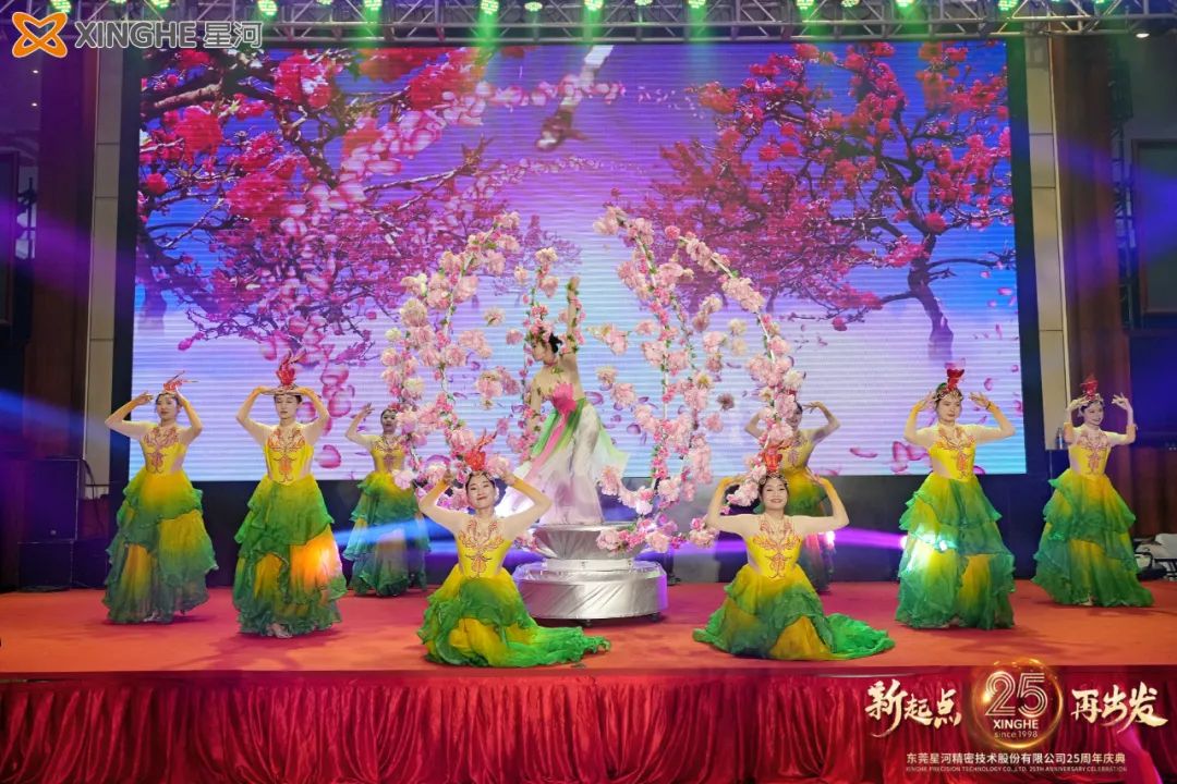 晚宴現(xiàn)場,還邀請了眾多演出助興,大型3D互動視頻秀《筑夢》完美詮釋了星河逐夢百年,成為全球精密壓鑄領(lǐng)導(dǎo)者的偉大夢想。大型舞蹈《夢回大唐》《綻放》更是讓人感受到星河從往至今、初心不改,一路追求發(fā)展到完成新發(fā)展、新跨越的蛻變。美女歌手的獻(xiàn)唱和現(xiàn)場互動,更是將晚宴現(xiàn)場氣氛推向高潮。大家在一片歡快愉悅的氛圍下,共慶這難忘時刻。