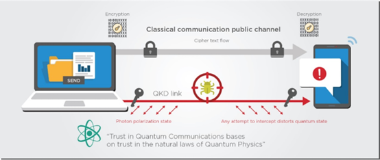鑒于這些風(fēng)險(xiǎn),可以說保護(hù)數(shù)據(jù)和通信的最安全方式是以量子對抗量子:通過利用量子物理原理的安全協(xié)議,保護(hù)你的數(shù)據(jù)免受量子計(jì)算機(jī)的黑客攻擊。這就是量子密鑰分配(QKD)的作用。