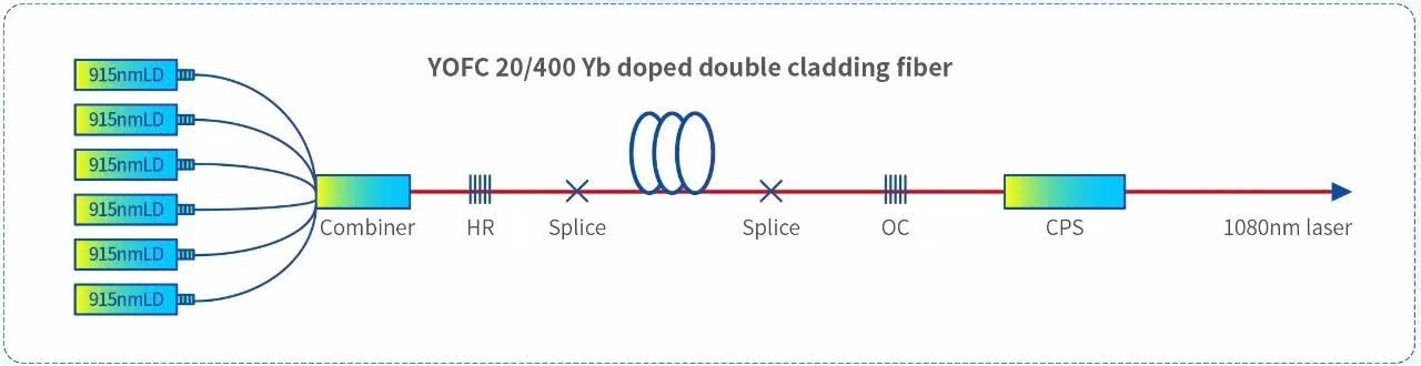 1. 高功率光纖激光器用20/400雙包層摻鐿光纖