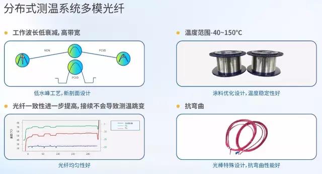 目前DTS系統(tǒng)在長(zhǎng)距離傳輸中空間分辨率劣化、測(cè)溫距離受限、耐高溫和抗氫損暗化等方面出現(xiàn)共性痛點(diǎn)問題。針對(duì)此問題,長(zhǎng)飛分別推出了兩款延長(zhǎng)DTS測(cè)溫距離和C波段衰減帶寬優(yōu)化的多模光纖和少模光纖。