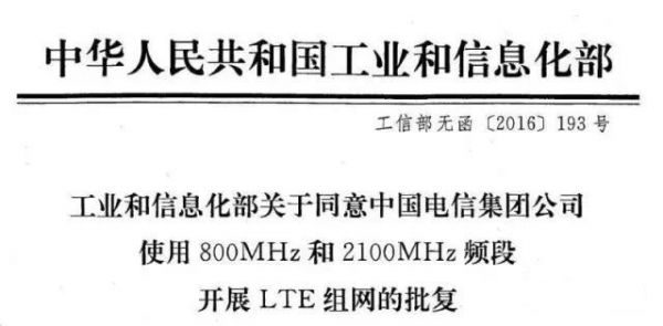 ICCSZ訊 有網(wǎng)友爆料,工信部同意中國電信使用800M和2100M頻段開展LTE組網(wǎng)!有圖有真相: