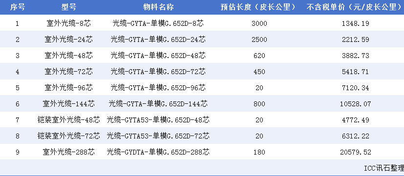 ICC訊 2月15日,中國(guó)電信天津分公司啟動(dòng)2026年室外光纜集采項(xiàng)目。公告顯示,此次采購(gòu)產(chǎn)品為室外光纜,包含GYDTA、GYTA等室外光纜產(chǎn)品。預(yù)估采購(gòu)規(guī)模為7610皮長(zhǎng)公里。