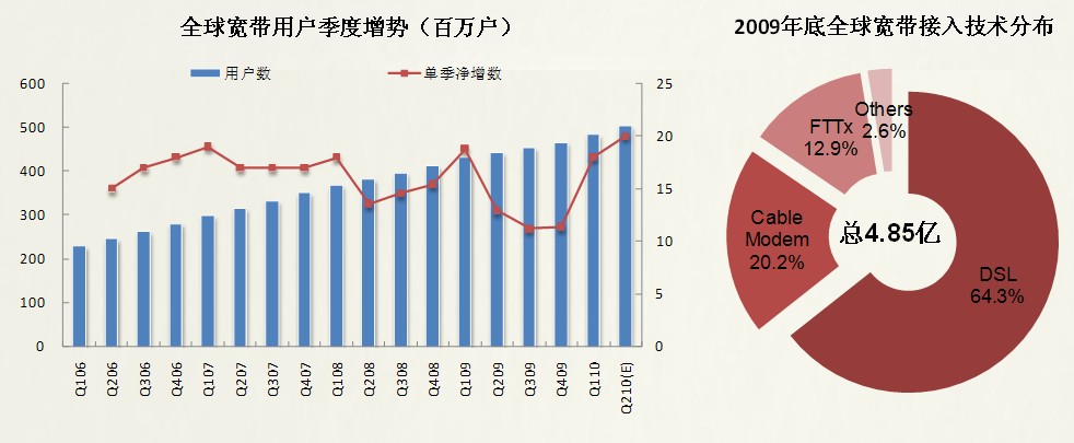 【訊石光通訊咨詢網(wǎng)】根據(jù)訊石公司統(tǒng)計(jì)結(jié)果顯示,截止到2010年3月底,全球?qū)拵в脩魯?shù)達(dá)到4.85億,單季增長(zhǎng)數(shù)為1802萬(wàn),增速相比前幾個(gè)季度加快。