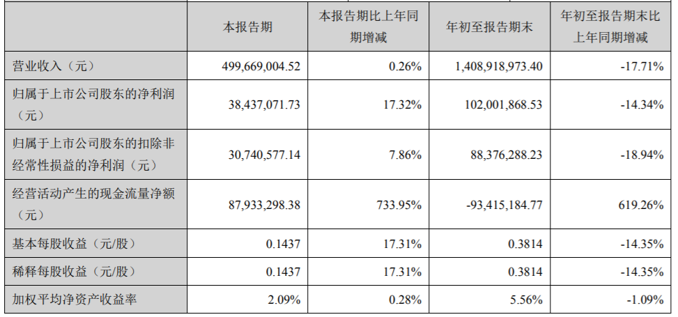 ICC訊 (編輯:Nicole)四川天邑康和通信股份有限公司(以下簡稱:天邑股份或公司)公布2020年第三季度業(yè)績報告:報告期內(nèi),公司實現(xiàn)營業(yè)收入約4.997億元,同比增長0.26%;實現(xiàn)歸屬于上市公司股東的凈利潤3843.71萬元,同比增長17.32%;實現(xiàn)歸屬于上市公司股東的扣除非經(jīng)常性損益的凈利潤3074.06萬元,同比增長7.86%;基本每股收益0.14元。