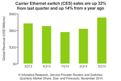 ICCSZ訊 2014年12月1日,市場調研公司Infonetics發(fā)布其最新的關于三季度的運營商級路由器和交換機市場報告。