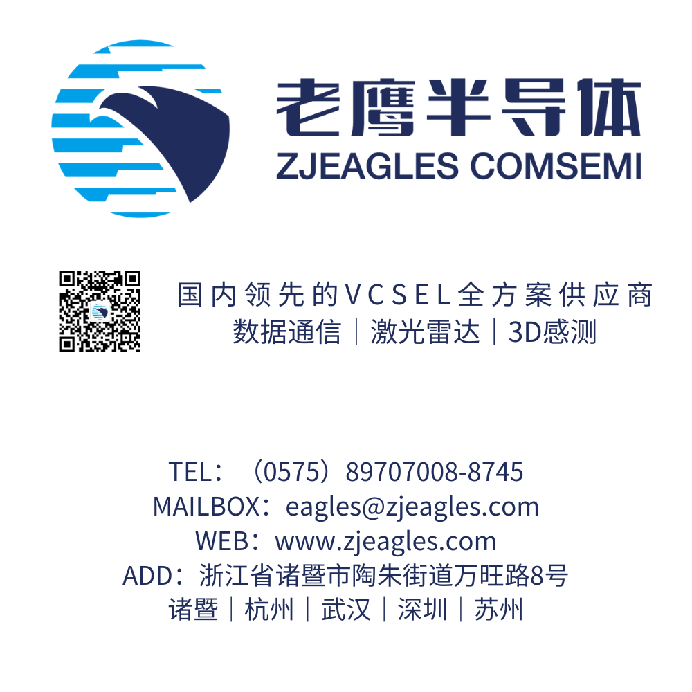 浙江老鷹半導(dǎo)體技術(shù)有限公司 (http://www.zjeagles.com/) 是一家從事新型半導(dǎo)體材料設(shè)計(jì)、研發(fā)及封測(cè)的國家高新技術(shù)企業(yè)。公司致力于高速光通信VCSEL芯片、高功率密度激光雷達(dá)VCSEL芯片、高效率3D感測(cè)VCSEL芯片的研發(fā)、生產(chǎn)和銷售,全面賦能AI智算中心光互連、高階自動(dòng)駕駛、消費(fèi)電子及工業(yè)應(yīng)用的智能傳感等領(lǐng)域,為行業(yè)客戶提供領(lǐng)先的解決方案。公司總部位于浙江,在深圳、武漢、新加坡、北美均設(shè)有分支機(jī)構(gòu),現(xiàn)擁有行業(yè)領(lǐng)先的生產(chǎn)線、高標(biāo)準(zhǔn)的生產(chǎn)環(huán)境及相關(guān)實(shí)驗(yàn)檢測(cè)設(shè)備和設(shè)施,擁有行業(yè)領(lǐng)先水平的技術(shù)產(chǎn)品開發(fā)及大規(guī)模量產(chǎn)能力。