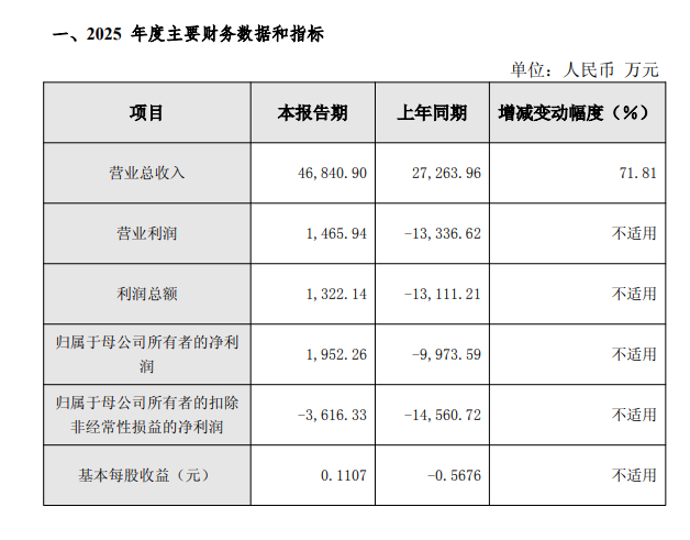 摘要:長光華芯公司發(fā)布2025年度業(yè)績快報(bào)。2025 年度長光華芯實(shí)現(xiàn)營業(yè)收入4.68億元,同比增長71.81%;實(shí)現(xiàn)歸屬于母公司所有者的凈利潤 1952.26萬元,同比扭虧為盈。