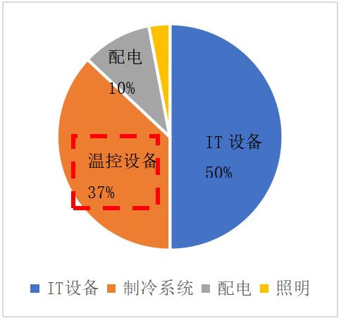 如下圖的PUE拆解圖所示,可以看到溫控設(shè)備在整個(gè)數(shù)據(jù)中心PUE中的占比較高。目前電源效率的提升空間已非常有限,那么制冷系統(tǒng)的能效提升,對(duì)降低數(shù)據(jù)中心PUE將起到?jīng)Q定性的作用,采用高效科學(xué)的溫控設(shè)備和熱管理技術(shù),可助力數(shù)據(jù)中心在當(dāng)前標(biāo)準(zhǔn)下,直接躋身一級(jí)能效的水平。