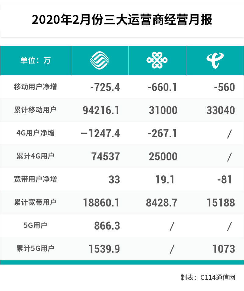 受疫情影響,2020年開年,三大運(yùn)營商創(chuàng)下4G商用以來最差開局,并將這一糟糕的勢頭延續(xù)到了2月份。運(yùn)營商移動用戶和4G用戶數(shù)據(jù)欠佳,寬帶用戶增長放緩。但是,2月份是值得被通信行業(yè)銘記的月份,因?yàn)閺倪@個月開始,中國電信不再公布4G用戶數(shù),轉(zhuǎn)而開始公布5G數(shù)據(jù)。而此前,中國移動也已經(jīng)開始公布5G數(shù)據(jù)。一方謝幕,一方登臺,屬于5G的時代真正開始了!