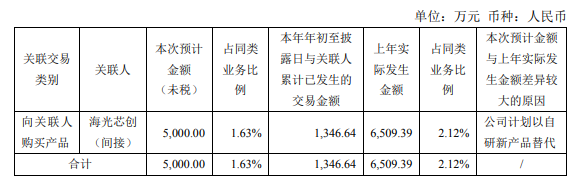 劍橋科技預(yù)計(jì)2021 年度與海光芯創(chuàng)發(fā)生的日常關(guān)聯(lián)交易情況如下: