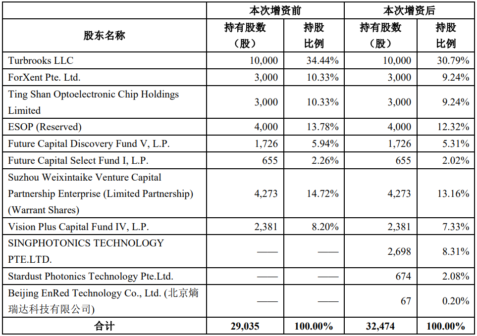 新加坡科技(Singphotonics Technology Pte.Ltd.):出資4,000萬元人民幣,增資后持股8.31%。