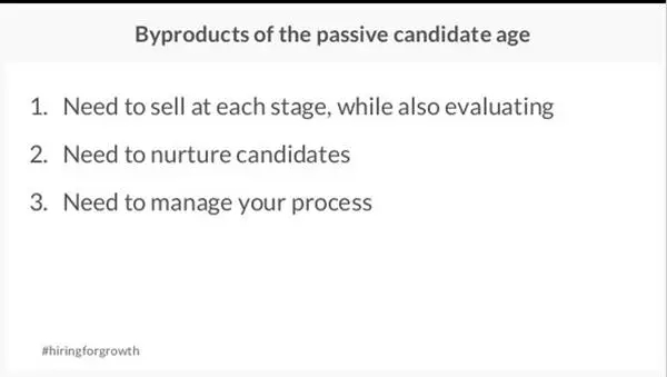 主要源自兩個原因:一、對于那些高價值的人才,如果你期望他們加入你的團(tuán)隊,你可能需要在他們沒有意向找工作的時候招募他們;二、就算是最好的候選人主動找工作,你需要非??斓匕l(fā)現(xiàn)并且俘獲他們。不然,你很可能一無所獲。