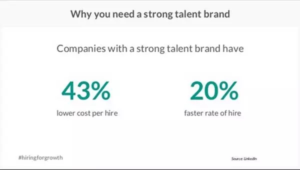 如果創(chuàng)業(yè)公司擁有強(qiáng)勢的人才品牌,單一招聘成本會降低43%,招聘時間會縮短20%。