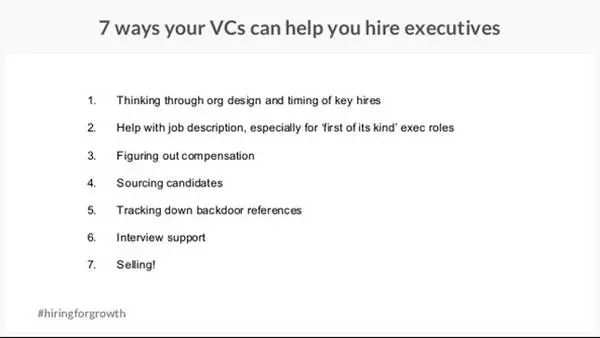 你的投資人在招聘流程中的每一步,都可能為你提供意想不到的資源。多多合理的利用他們。