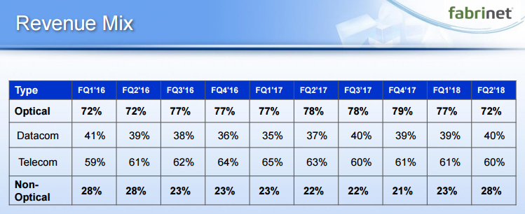 ICCSZ訊(編譯:Nina)日前,Fabrinet公司(紐交所:FN),一家為OEM廠商提供先進(jìn)光學(xué)封裝和精密光學(xué)、機電和電子制造服務(wù)的領(lǐng)先供應(yīng)商,公布了其截至2017年12月29日的2018財年第二季度財務(wù)業(yè)績。