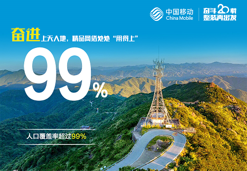 20年來,中國(guó)移動(dòng)一直致力于用最先進(jìn)的信息技術(shù)服務(wù)社會(huì)民生,用最優(yōu)質(zhì)的網(wǎng)絡(luò)、最好的服務(wù)回饋客戶。20年來,中國(guó)移動(dòng)在網(wǎng)絡(luò)建設(shè)中,始終以“更廣、更深、更厚、更快”為目標(biāo),積極采用全球領(lǐng)先技術(shù),加快網(wǎng)絡(luò)升級(jí)步伐,大幅提升網(wǎng)絡(luò)質(zhì)量,完善客戶體驗(yàn)。20年來,中國(guó)移動(dòng)矢志創(chuàng)新,攻下一座座技術(shù)“新高峰”,啃下一個(gè)個(gè)覆蓋“硬骨頭”,454萬個(gè)中國(guó)移動(dòng)基站如雨后春筍般拔地而起,覆蓋全國(guó)人口的99%以上,真正實(shí)現(xiàn)了上天入地、漂洋過海。
