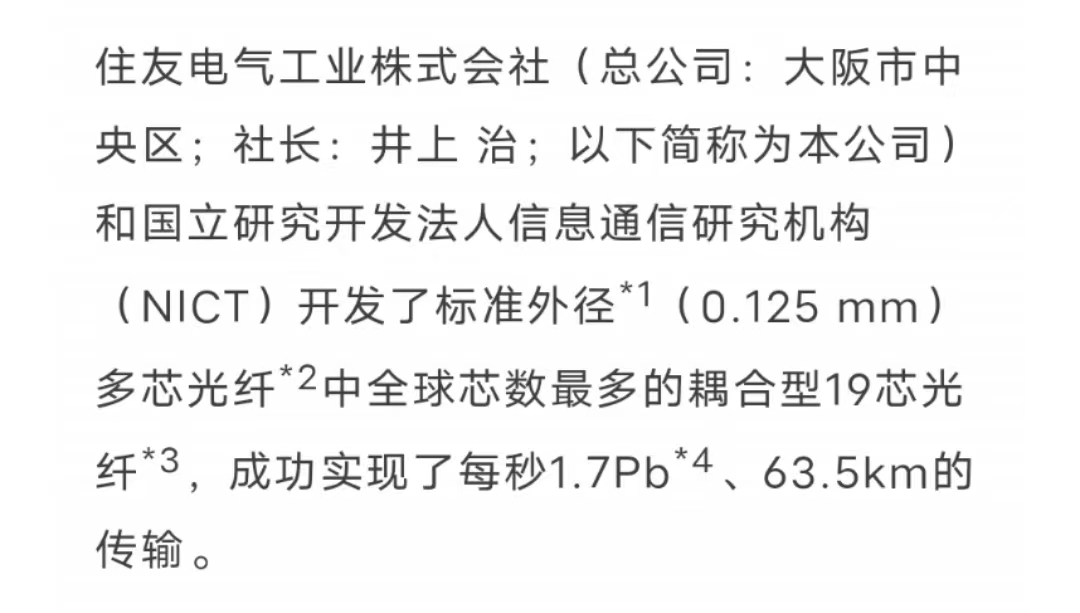本公司此前曾開發(fā)了耦合型4芯光纖和耦合型7芯光纖這兩種適用于遠(yuǎn)程大容量傳輸?shù)臉?biāo)準(zhǔn)外徑耦合型多芯光纖,這次通過優(yōu)化芯的結(jié)構(gòu)和配置,開發(fā)了標(biāo)準(zhǔn)外徑中全球芯數(shù)最多的耦合型19芯光纖。