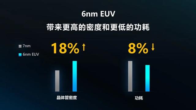 一方面6nm EUV 相比7nm 晶體管的密度提升18%,芯片能力獲得大幅的提升。另一方面能耗將下降8%,續(xù)航更長(zhǎng)。這兩方面對(duì)于5G終端的體驗(yàn)來說是非常直觀和重要。