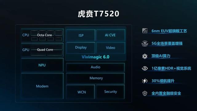 據(jù)公開資料顯示,紫光展銳新一代5G智能手機(jī)平臺(tái)虎賁T7520是全球首款采用6nm EUV工藝的芯片,并且在技術(shù)工藝、通信能力、AI、視覺能力、續(xù)航能力,安全性等方面優(yōu)勢(shì)明顯。